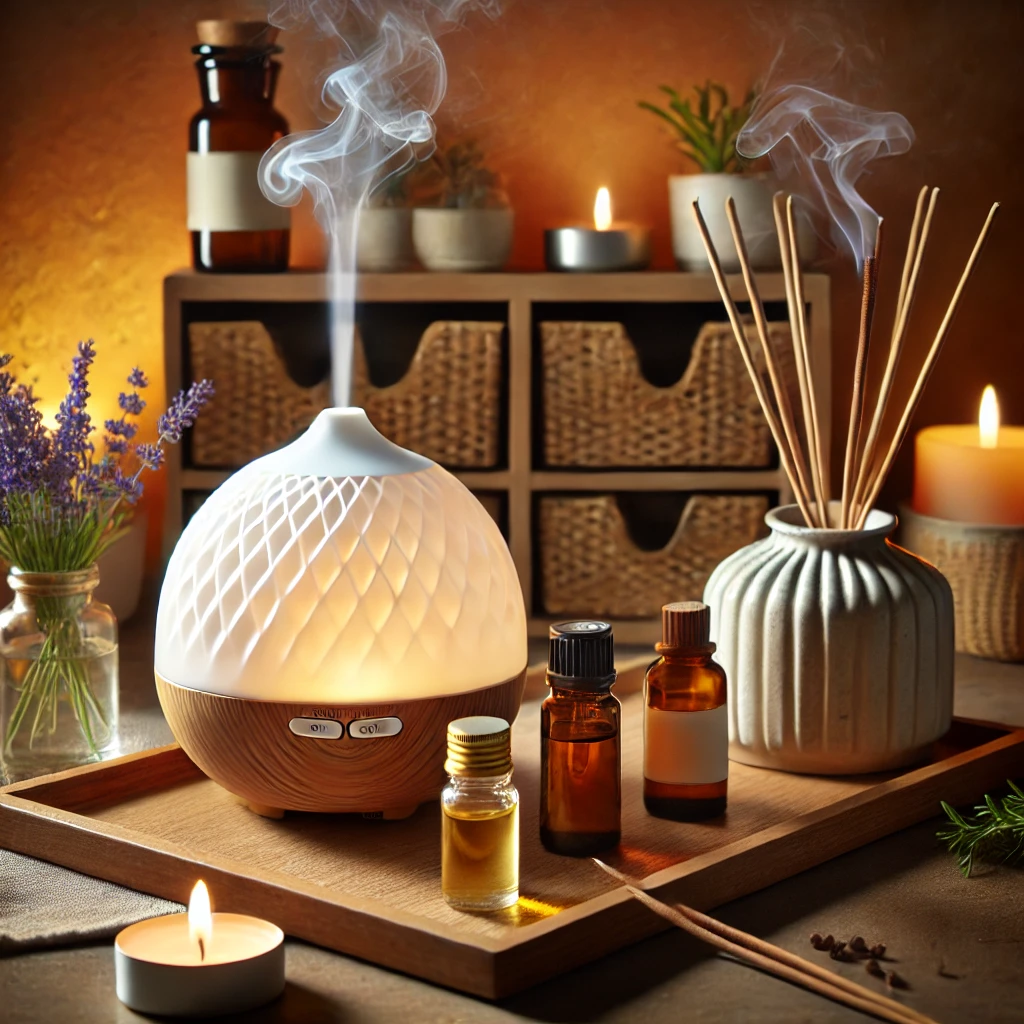 - 디퓨저 활용: 에센셜 오일을 디퓨저에 몇 방울 떨어뜨려 공기 중에 향을 퍼뜨립니다.
